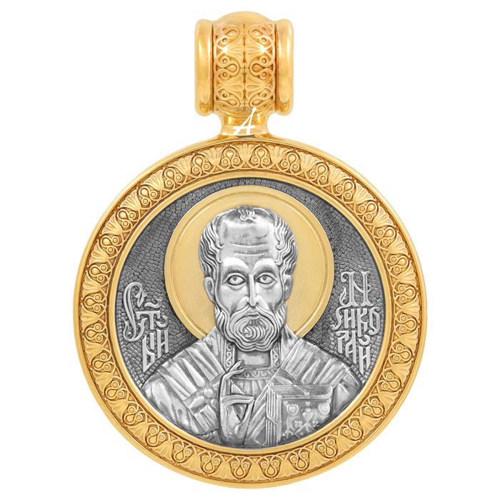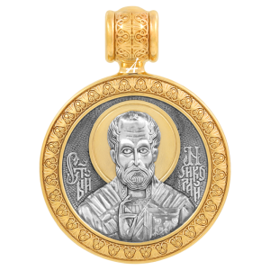 На лицевой стороне образка помещена икона святителя Николая Чудотворца, на обороте — чудо спасения трех купцов, которые были ограблены корабельщиками и выброшены в море. Вокруг — слова молитвы. Они просты и одновременно исполнены глубокого символического смысла: «Изрядный угодниче Христов, миру всему источаяй многоценное милости миро и неисчерпаемое чудес море».