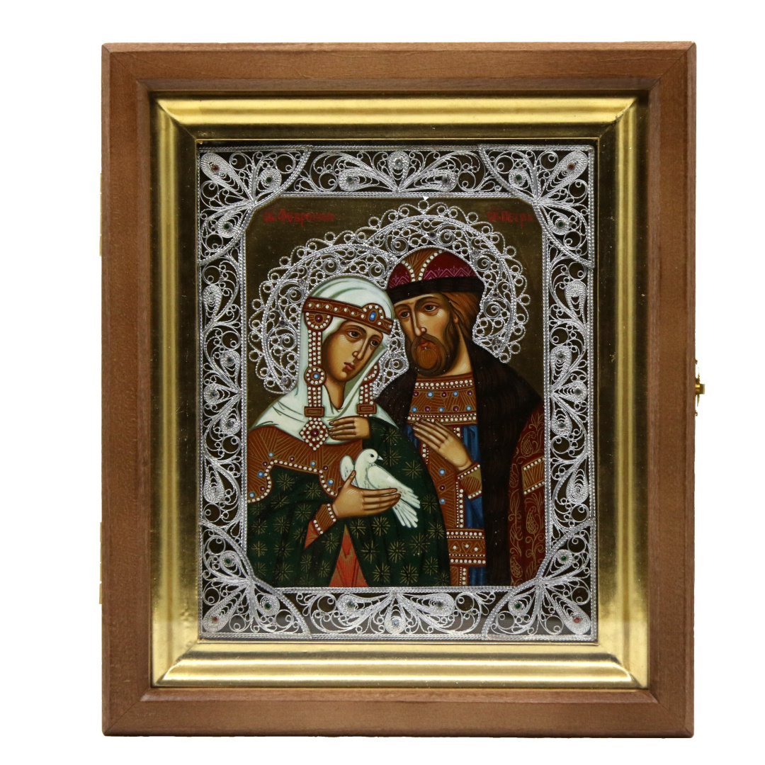 Ручная работа. Размер иконы 17*21 см. Киот, липа, золото, оклад, скань, мельхиор