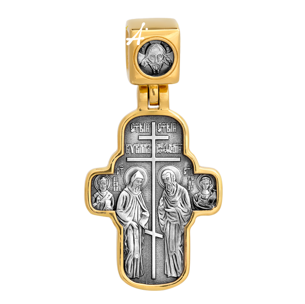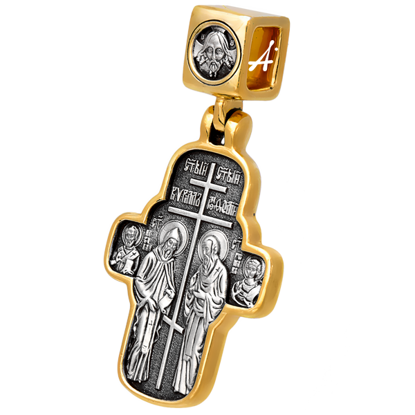 Святые, изображенные на этом нательном кресте, помогут в просвещении ума всем, кто стремится к новым знаниям.