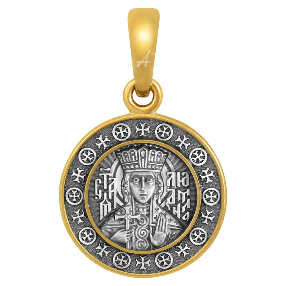 На оборотной стороне образка помещен текст молитвы святой Людмиле: «Святая угодница Божия Людмила, моли Бога о мне грешной».