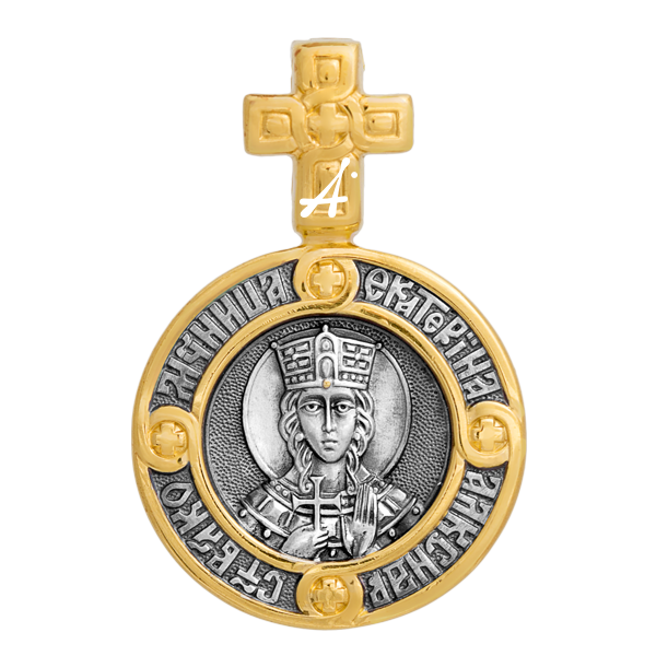 Небольшой образок с иконами святой великомученицы Екатерины на лицевой стороне и Ангела Хранителя на обороте выполнен в форме круга. Круг — символ вечности, Неба и Бога и знак того, что святые, прославленные Христом, пребывают с Ним в Вечности на Небесах.