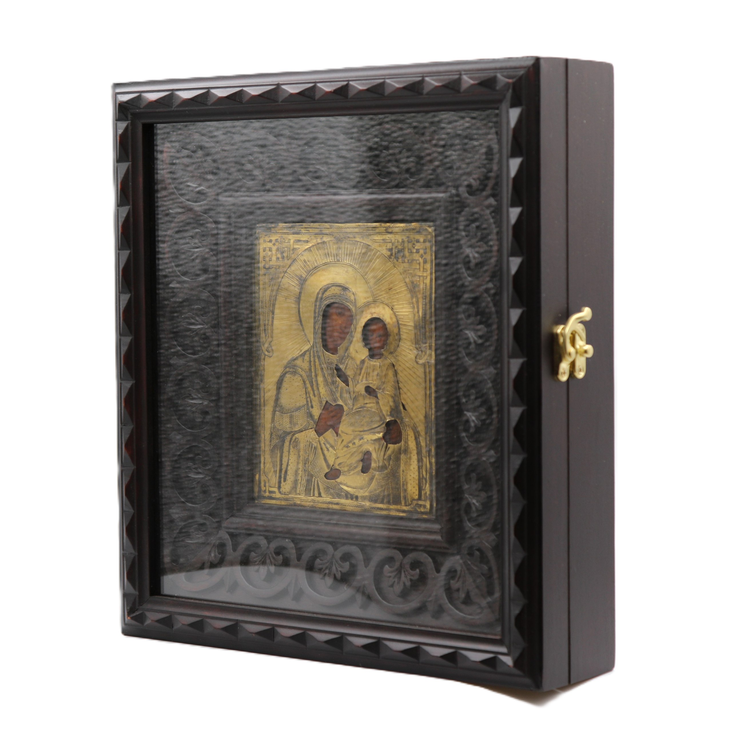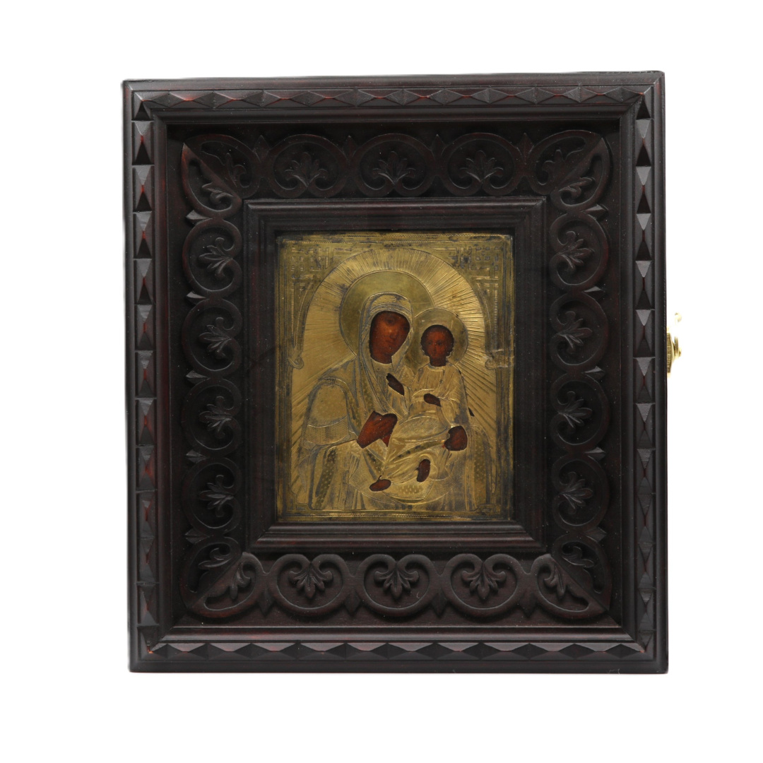 19 век. Размер иконы 23*26 см. Оклад серебро. Липа, левкас, масло, киот