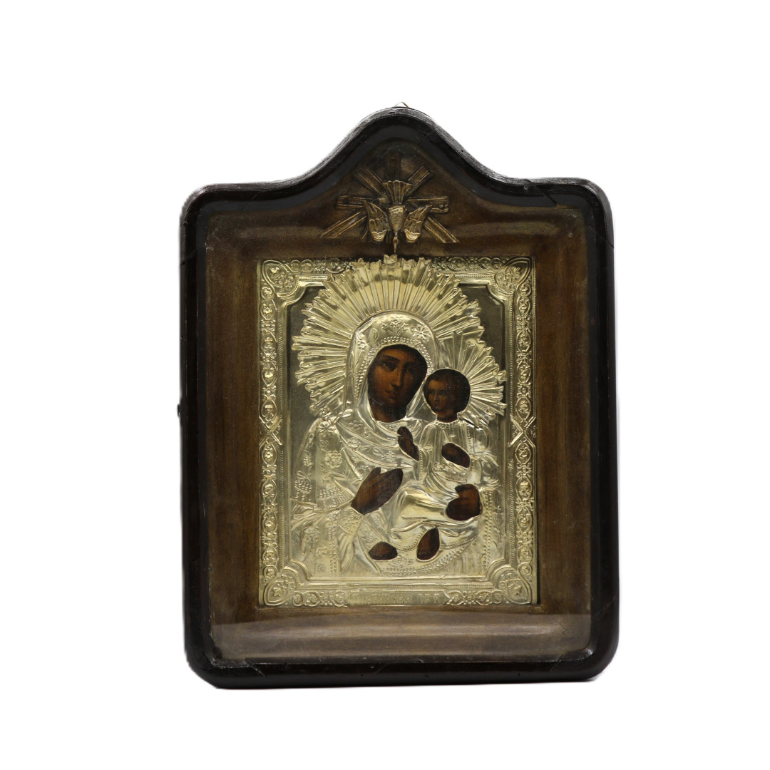 19 век. Реставрация 5%. Размер 17*21 см Липа, левкас, темпера. Киот. Латунь