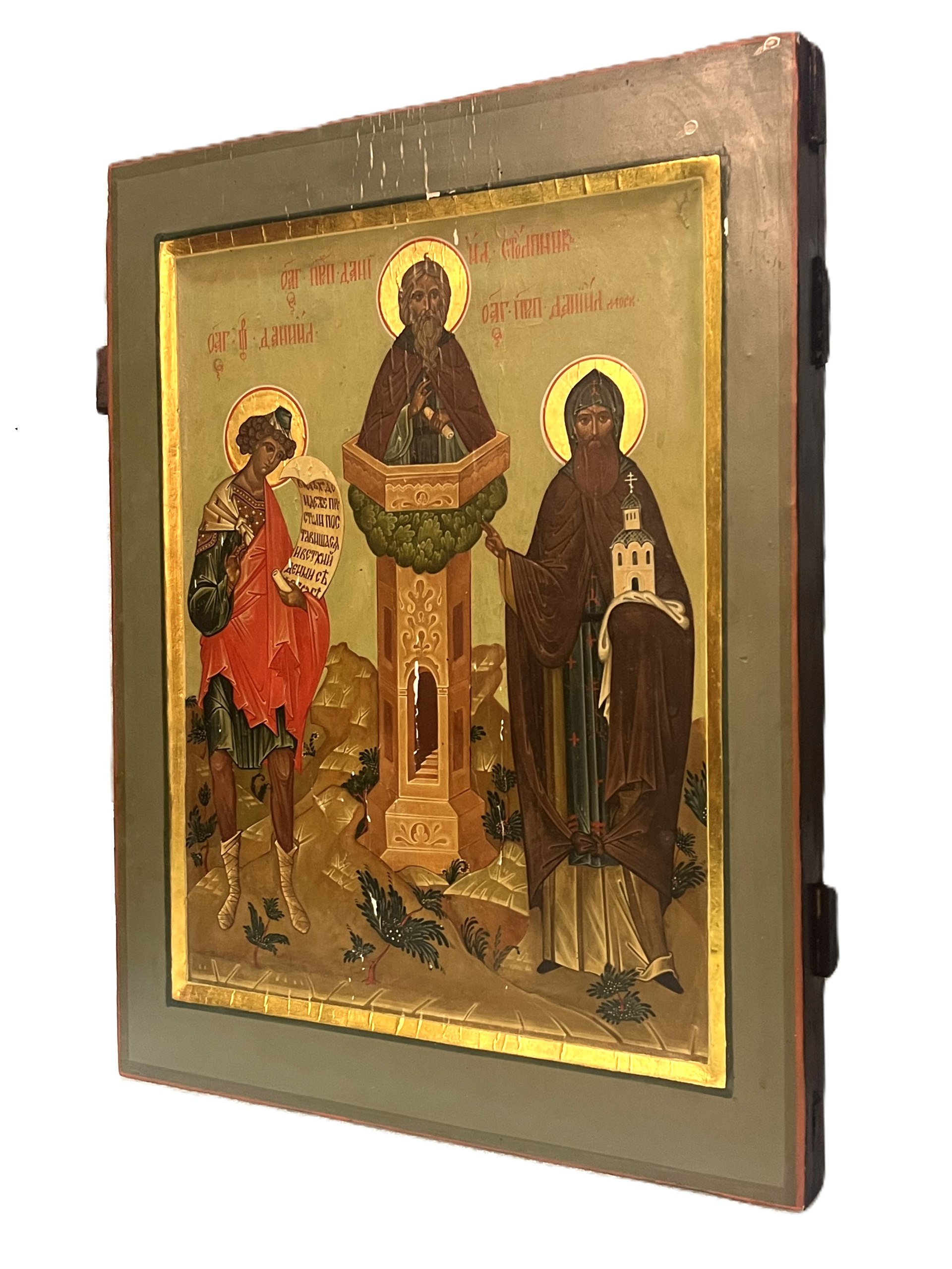 Благодатный соборный образ, объединяющий трёх великих святых, носивших имя Даниил и просиявших в разных веках и чинах святости. Замечательный пример почитания небесных покровителей и духовной связи через имя.