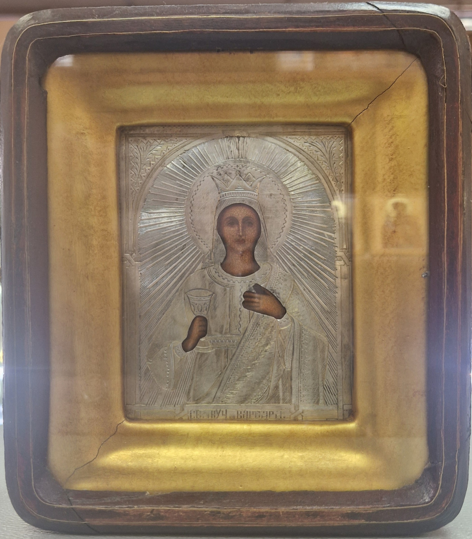 19 век. Размер иконы 9*11 см. Киот, риза, серебро