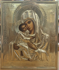 19 век. Размер иконы 26,5*31 см. Оклад латунь