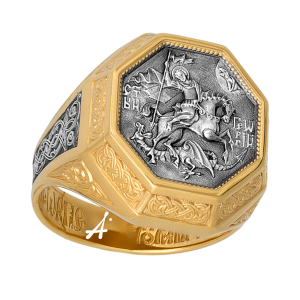 Здесь на восьмигранном щитке изображен вмч. Георгий, поражающий змия, на шинке помещено молитвенное обращение к святому на славянском языке с просьбой умолить Бога послать защиту носящему кольцо: «Святый Георгие, Владыку всех моли спастися мне».