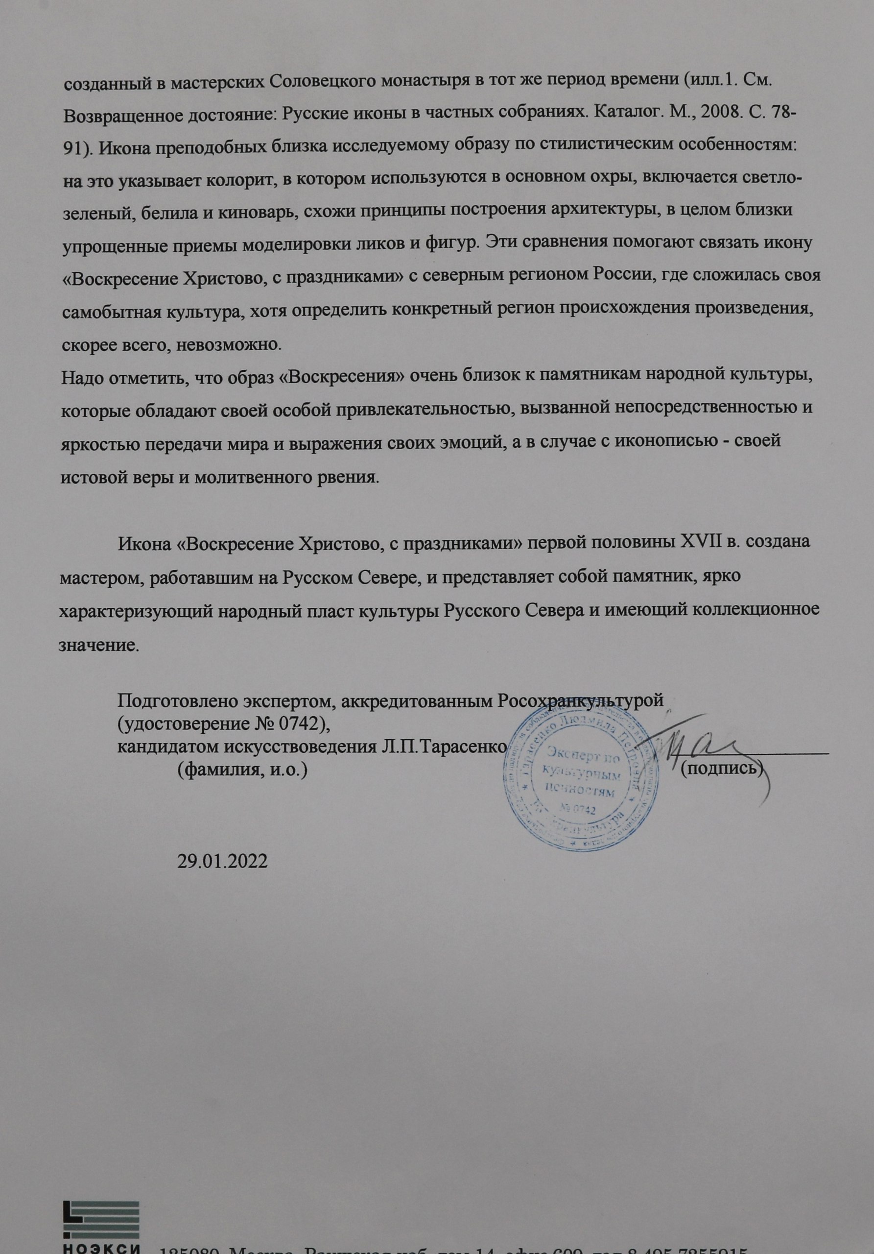Икона имеет экспертное заключение
