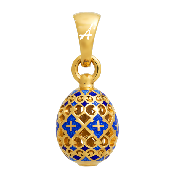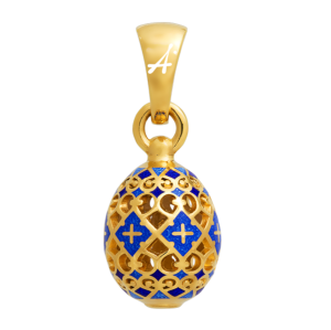 Уже больше ста лет мода на украшения в виде яиц не ослабевает. Небольшая коллекция эмалевых яиц-подвесок была создана и нашей компанией. Это несколько видов маленьких цельнолитых и более крупных прорезных серебряных яиц с позолотой. Яйца орнаментированы традиционным узором и выполнены в древнейшей технике выемчатой горячей эмали, которая рождает яркие, глубокие по цвету и необыкновенно прочные изделия.
