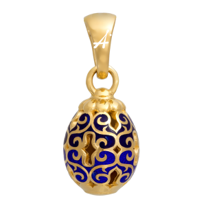 Уже больше ста лет мода на украшения в виде яиц не ослабевает. Небольшая коллекция эмалевых яиц-подвесок была создана и нашей компанией. Это несколько видов маленьких цельнолитых и более крупных прорезных серебряных яиц с позолотой. Яйца орнаментированы традиционным узором и выполнены в древнейшей технике выемчатой горячей эмали, которая рождает яркие, глубокие по цвету и необыкновенно прочные изделия.