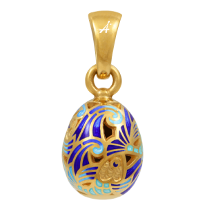 Уже больше ста лет мода на украшения в виде яиц не ослабевает. Небольшая коллекция эмалевых яиц-подвесок была создана и нашей компанией. Это несколько видов маленьких цельнолитых и более крупных прорезных серебряных яиц с позолотой. Яйца орнаментированы традиционным узором и выполнены в древнейшей технике выемчатой горячей эмали, которая рождает яркие, глубокие по цвету и необыкновенно прочные изделия.